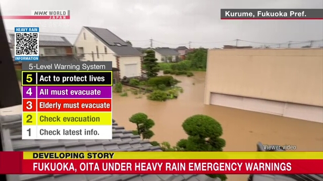 Autoridades meteorológicas japonesas mudaram o alerta de nível máximo para grande volume de chuvas para um nível abaixo nas províncias de Fukuoka e Oita, no sudoeste do Japão. Instam a população a permanecer vigilante e garantir sua segurança.