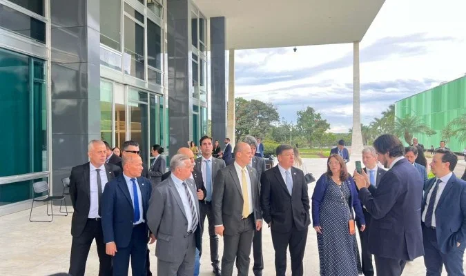 Minutos antes de serem recebidos, os parlamentares estavam conversando na marquise, em frente à entrada principal do STF, quando o ministro Gilmar Mendes passou pelo grupo, cumprimentando apenas alguns parlamentares a distância.