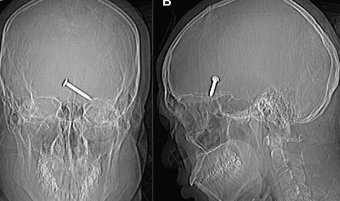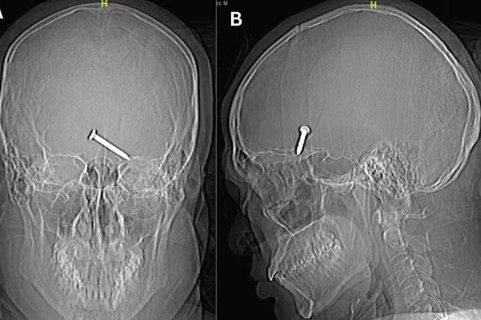 Um raio-x do crânio mostrou que o prego de três centímetros havia se alojado no cérebro do homem. Uma parte do crânio foi quebrada pelo impacto. No hospital, apesar da gravidade do ferimento, a vítima apresentava bons sinais vitais.