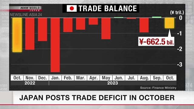A balança comercial do Japão voltou a apresentar déficit em outubro, pela primeira vez em dois meses, com o encarecimento das importações de energia resultante da desvalorização do iene.