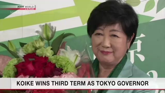 A governadora de Tóquio, Koike Yuriko, conquistou o seu terceiro mandato no cargo em eleição realizada domingo.