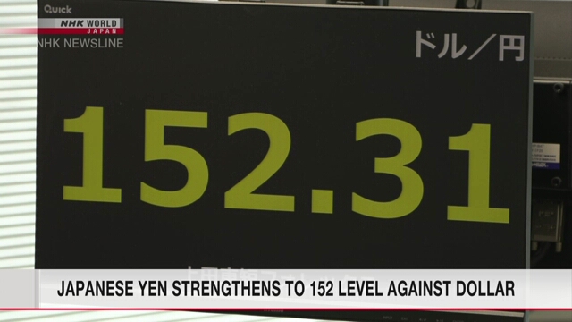 A moeda japonesa valorizou-se e chegou ao nível de 152 ienes frente ao dólar, com especulações de que o Banco do Japão venha a normalizar a sua política monetária mais cedo ou mais tarde.
