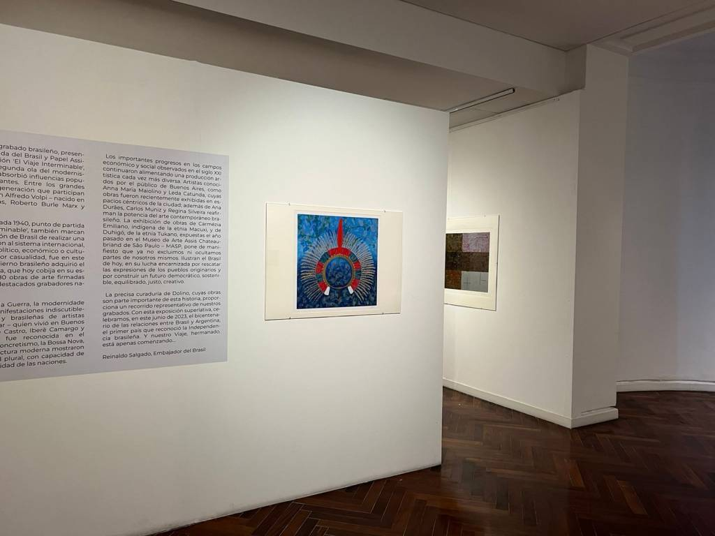 Segundo o diretor da Papel Assinado, Pedro Paulo Mendes, a exposição conta com obras de duas artistas indígenas, Duhigó e Carmézia Emiliano, que estão muito bem representadas entre outro artistas de renome brasileiros, entre eles: Anna Maria Maiolino , que acaba de estrelar uma exposição no Malba; Leda Catunda , que dividiu outra com Alejandra Seeber no mesmo museu em 2021 e agora participa da exposição El Dorado na Fundación Proa; Regina Silveira , que expôs no Museu de Arte Moderna de Buenos Aires em 1998, Roberto Burle Marx, Iberê Camargo, Amílcar de Castro, Rubens Gerchman, Alfredo Volpi, entre outros. Todos na “El viaje interminable”. “Inclusive no texto de apresentação da exposição Duhigó e Carmézia Emiliano ganharam destaque na fala do Embaixador do Brasil na Argentina, Reinaldo Salgado”, explica Pedro Paulo.