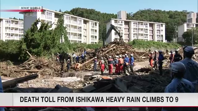 Autoridades do setor de emergência dizem que subiu para nove o número de mortos pelas chuvas de nível recorde na província japonesa de Ishikawa.