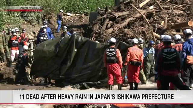 Pelo menos 11 pessoas morreram após as fortes chuvas que caíram em Ishikawa, província situada na costa do Mar do Japão. No último fim