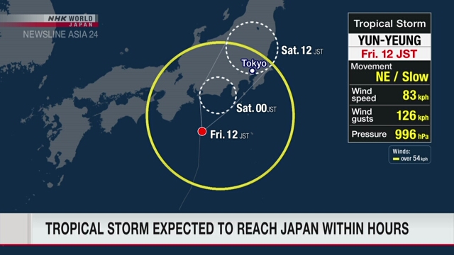 A tempestade tropical Yun-yeung está se aproximando do leste do arquipélago japonês.
