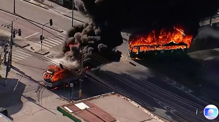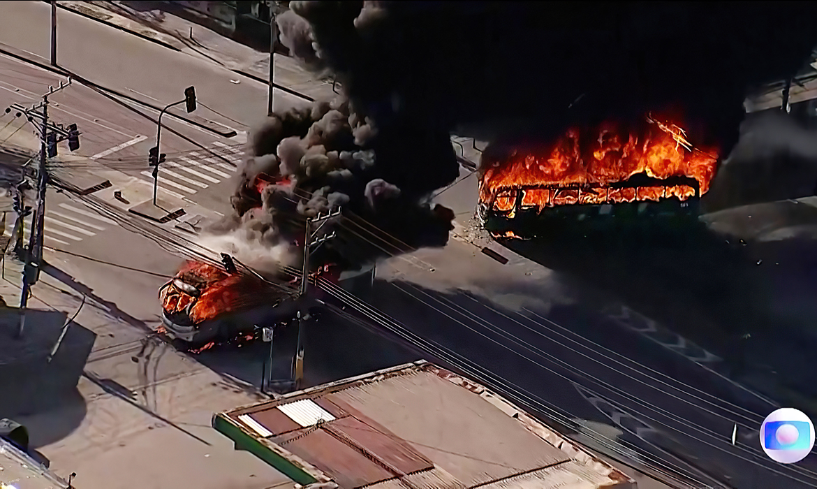 Criminosos atearam fogo em 35 ônibus e até na cabine de um trem da Supervia entre a tarde e a noite de segunda-feira, após uma operação policial ter resultado na morte de uma das lideranças da milícia que atua na zona oeste do Rio.